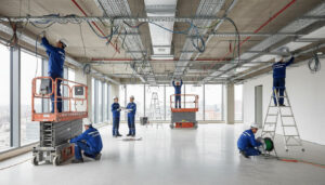 Электромонтажные работы в административных зданиях часто включают интеграцию с другими системами:
