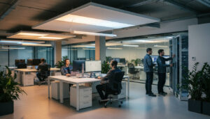 Освещение является важной частью электромонтажа. Оно должно обеспечивать комфортные условия работы сотрудников и соответствовать нормам.